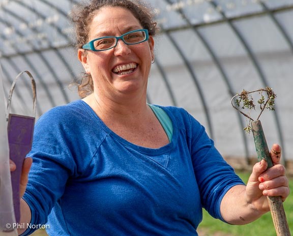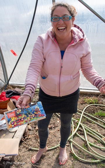 “In April and May I’ll have 5,000 great seedlings, 300 varieties, for my heirloom seedling sale in June,” she says. “Later in the summer you won’t be able to see the roof as tomato plants are strung up on cords and get so tall they start growing downward.”
