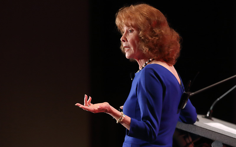 Staying relaxed, walk out on stage with good posture, head held high, and a steady, smooth gait. When you arrive at center stage, stop, smile, raise your eyebrows and slightly widen your eyes while you look around the room. Don’t block your body; rather, move your arms away from your sides so that your hand gestures are open and engaging. A relaxed, open face and body tells your audience that you’re confident and comfortable with the information you’re delivering. Since audience members will be mirroring any tension you display, your state of comfort will also relax and reassure them. (This may sound like common sense, but I once worked with a manager who walked onstage with hunched shoulders, a furrowed brow and squinted eyes. I watched the audience squirm in response. It was an unsettling way to begin a “let’s get together and support each other” speech.)